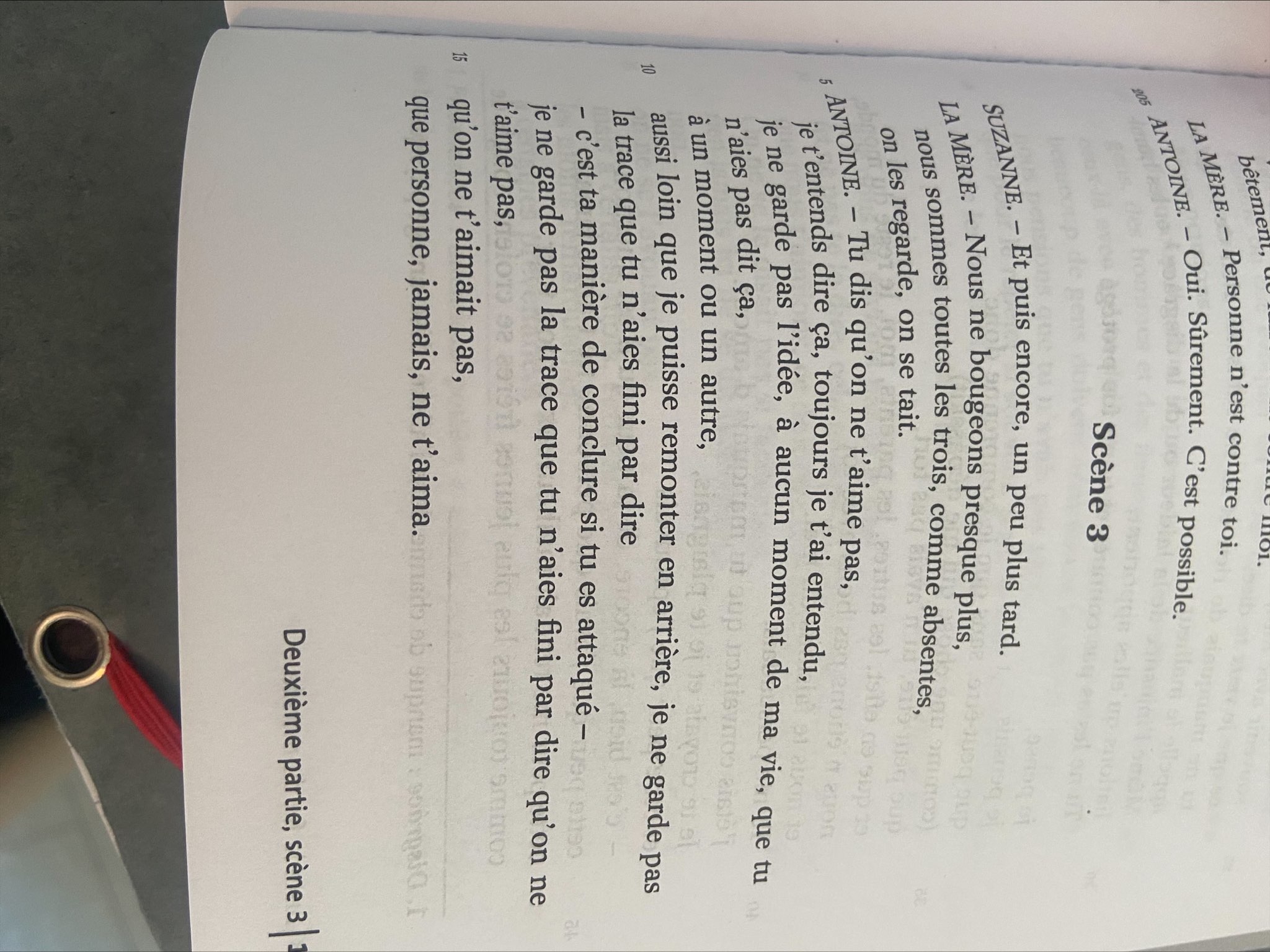 L 19 à 23 = Répétition de "je pense". Antoine essaye d'expliquer la plainte de son frère.